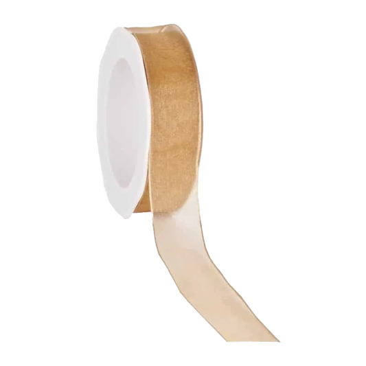 Wired Organzalint Goud met een lichte glans. Het ijzerdraadje in de geweven randen van het lint zorgt ervoor dat de strikken mooi in model blijven. Dit luxe cadeaulint is beschikbaar in verschillende breedtes.- Van €5.95 EUR