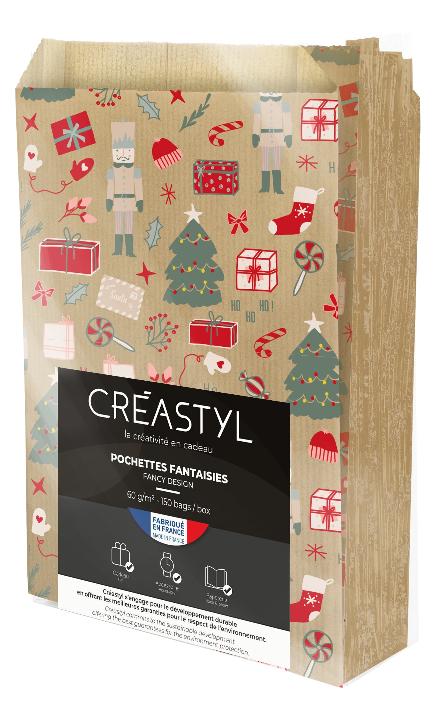 Milieuvriendelijke Papieren Zakjes – Rouge Kerstmotief – 12 + 4,5 x 20 cm, 60g/m²